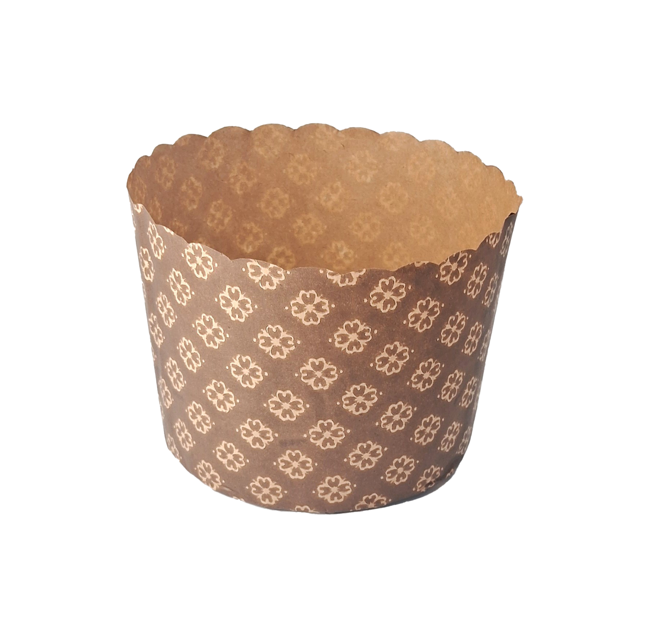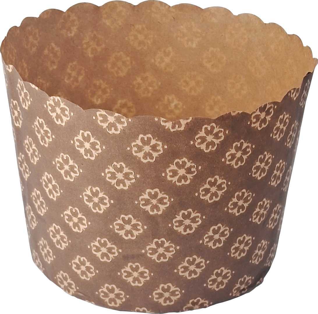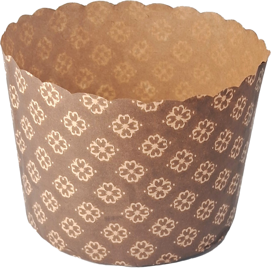 Forma para panetone 100g decorada: Forma Forneável Panetone 100g -100un Forma redonda de papel kraft resistente.