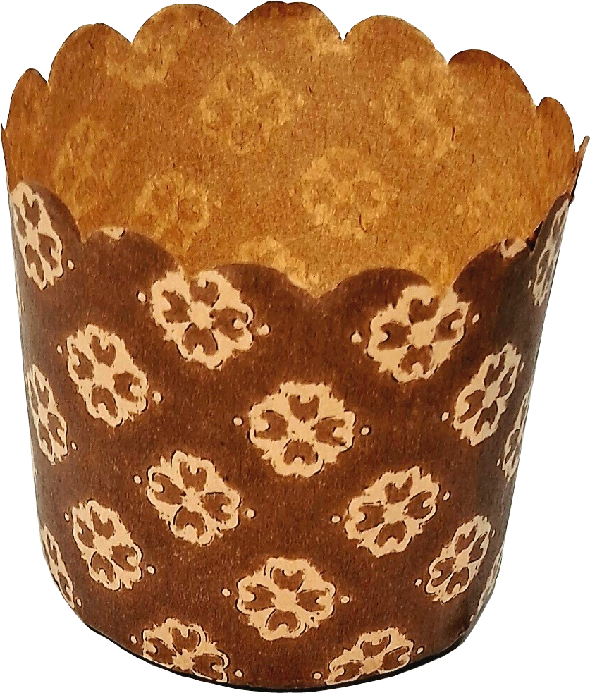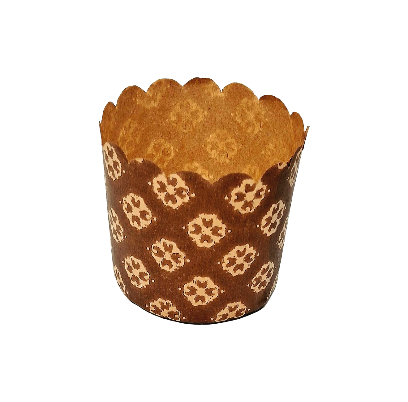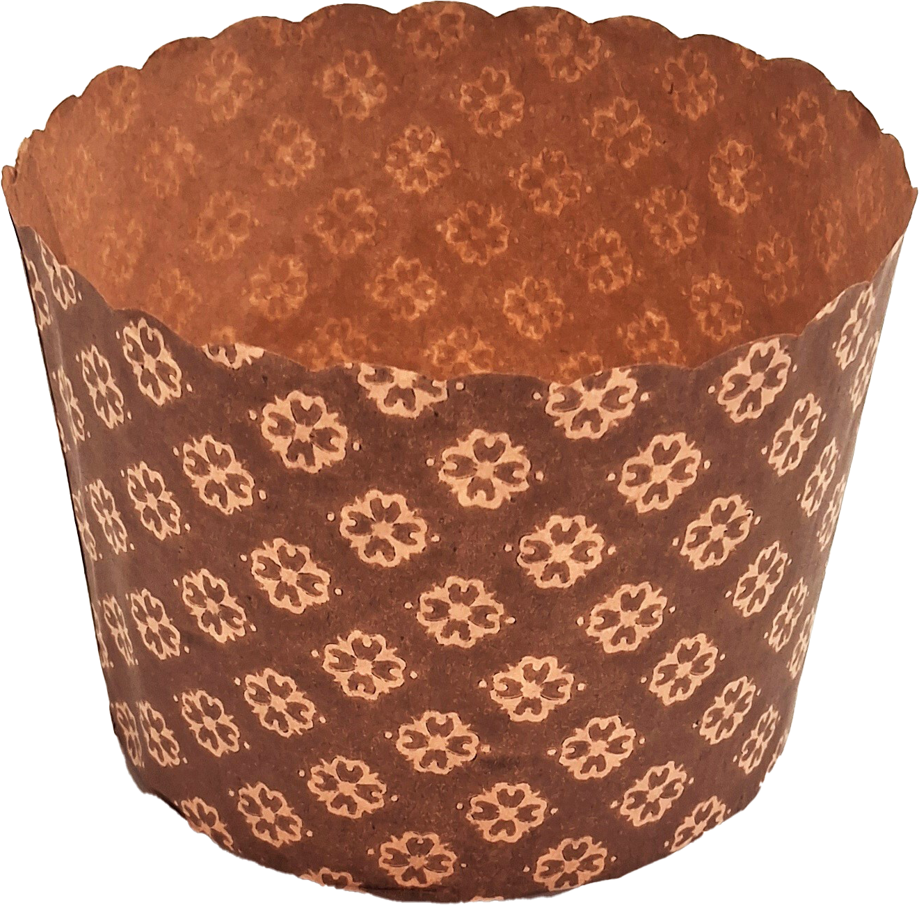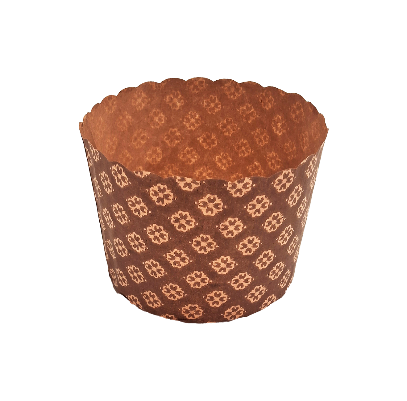 Forma para panetone 100g decorada: Forma Forneável Panetone 100g -100un Forma redonda de papel kraft resistente.